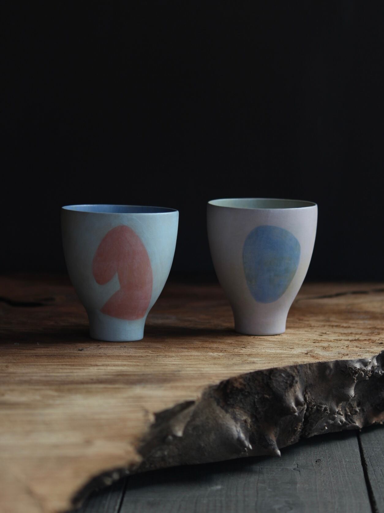 器を使う私たちと、器に容れられるもの、それぞれの存在のありよう。 水を受け止め、蓄え、注ぐというイメージをもとに作られたボトルやカップをはじめ、 装飾的に塗られた色とその表情にもご着目いただけますと幸いです。